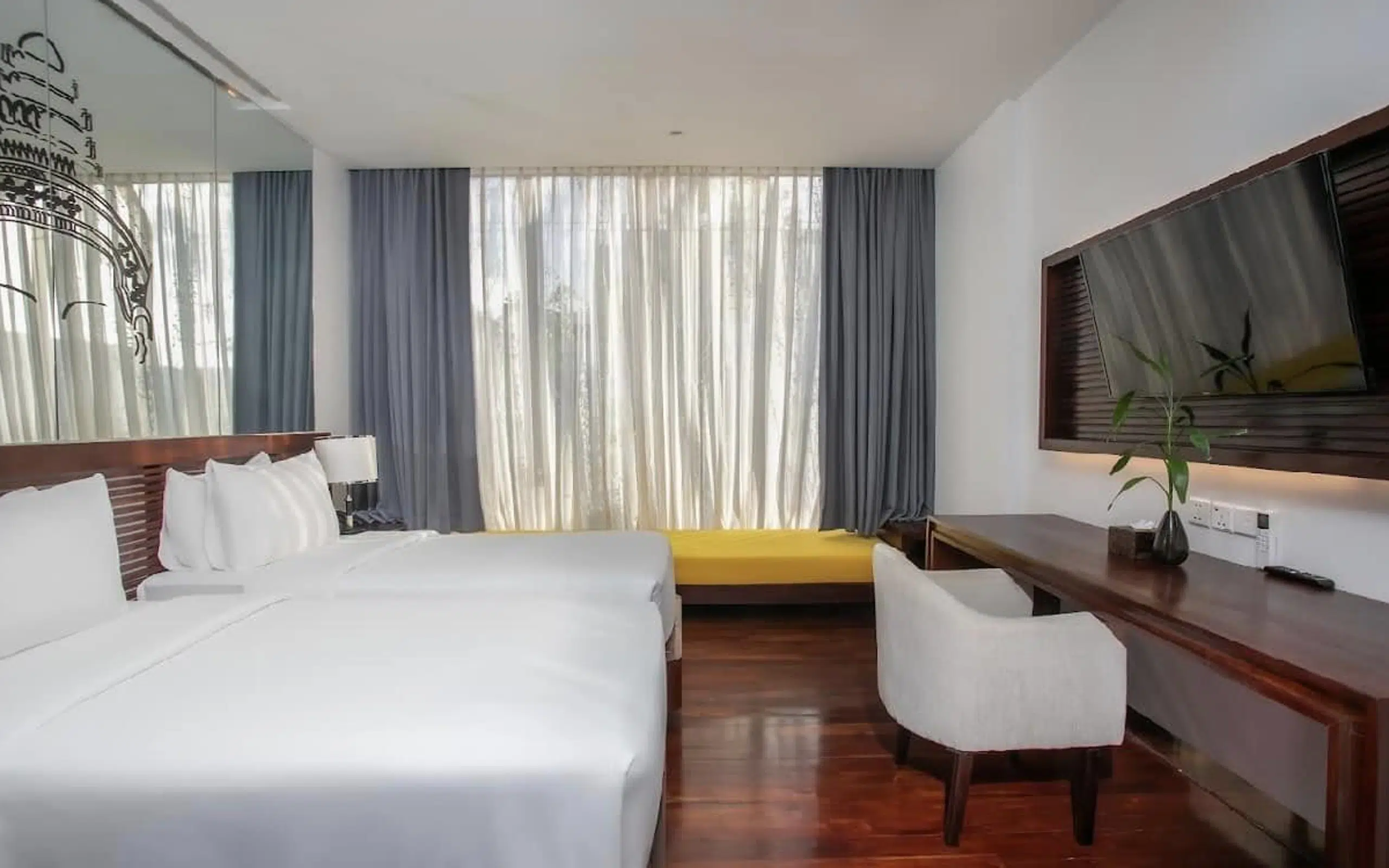 Escape to UTEY HOTEL in Siem Reap for a memorable stay. This modern accommodation offers comfort and convenience for two travelers. Enjoy luxurious rooms with AC, Wi-Fi, and a private balcony/terrace. Indulge in on-site dining, spa treatments, and personalized tours. Discover the cultural heritage of Siem Reap with New Hope Cambodia nearby. Book now for a relaxing getaway near Angkor Wat.